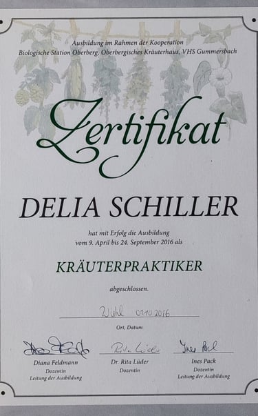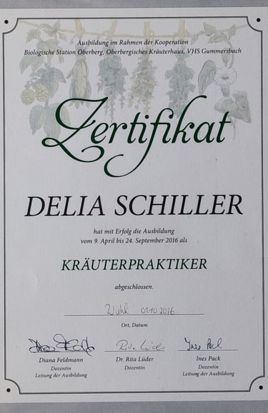 Ich bin eine Naturliebhaberin mit leidenschaftlichem Interesse an Wildkräutern. Um dieses Wissen anderen weiterzugeben, habe ich mich 2016 von Ines Pack aus dem Oberbergischen Kräuterhaus und ihrem Team zur Kräuterpraktikerin ausbilden lassen.